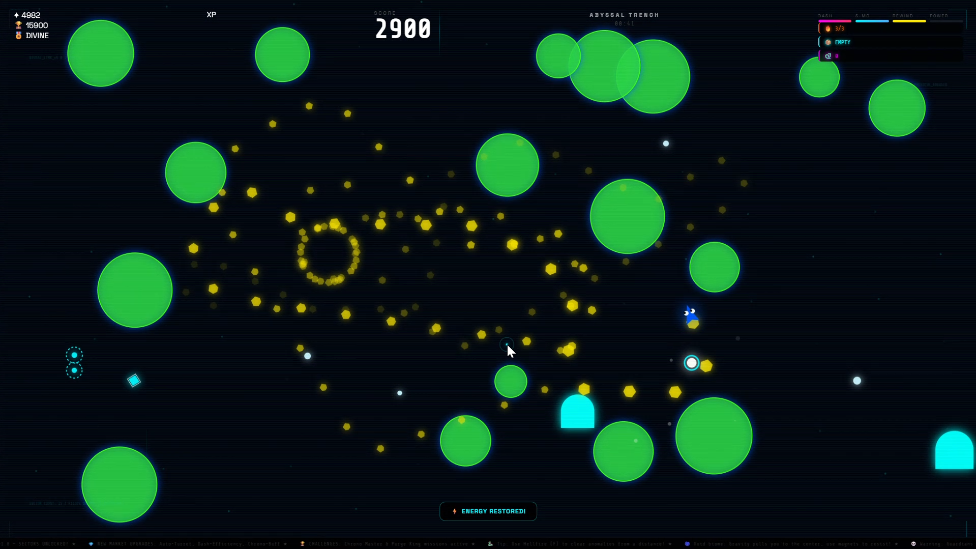 - Space: Dash (Watch your energy!).